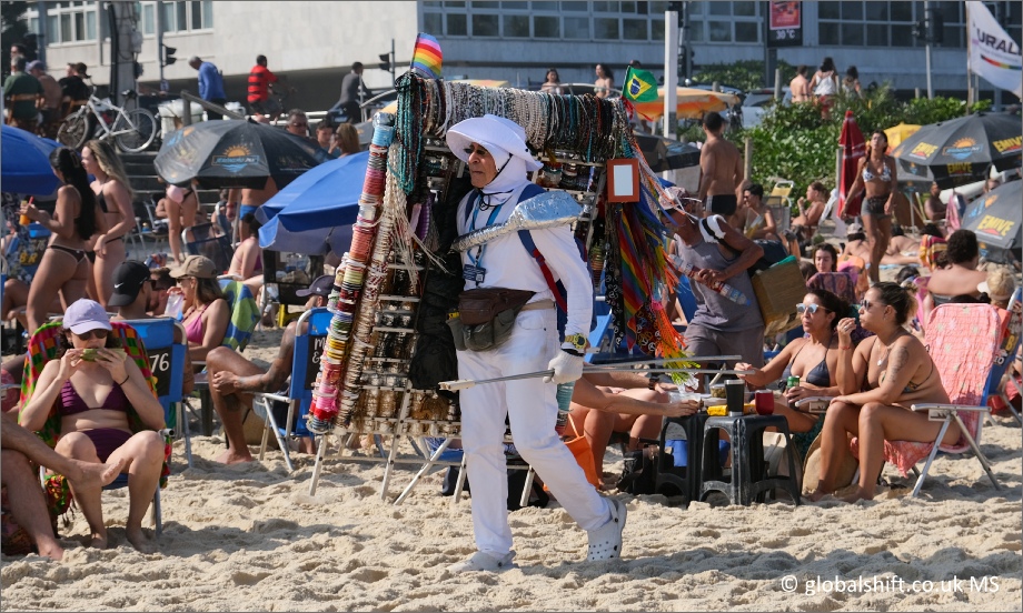 A jewellery vendor on Ipanema