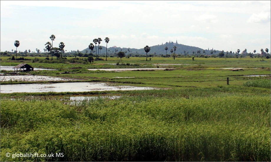 Rice fields, the town of Udong in the distance