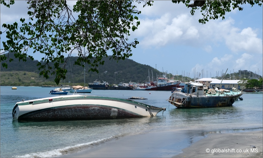 Capsized boat, Argyle, Carriacou