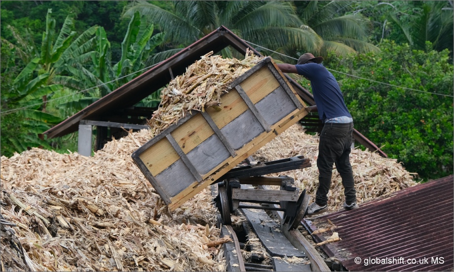 Waste sugar cane at River Antoine Rum Distillery