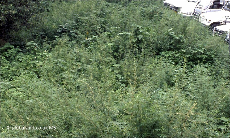 Marijuana growing as weeds in a ditch