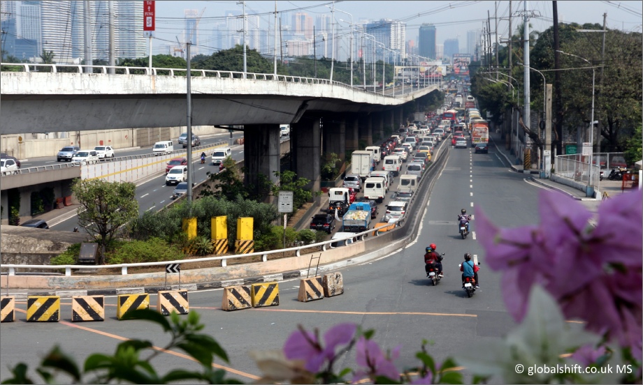 Traffic queues towards Quezon City