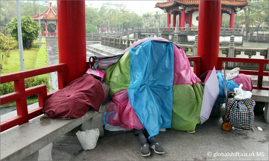 Homeless person in Taipei Botanical Garden